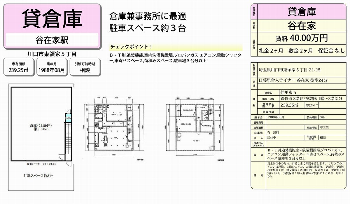 埼玉県川口市東領家5-21-25 (谷在家) 谷在家 貸倉庫 詳細データ