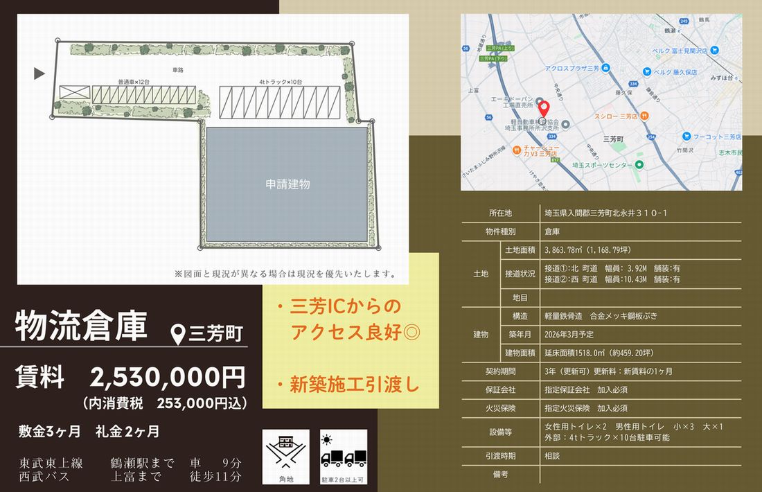 埼玉県入間郡三芳町北永井310-1 (鶴瀬) 鶴瀬 貸倉庫 詳細データ