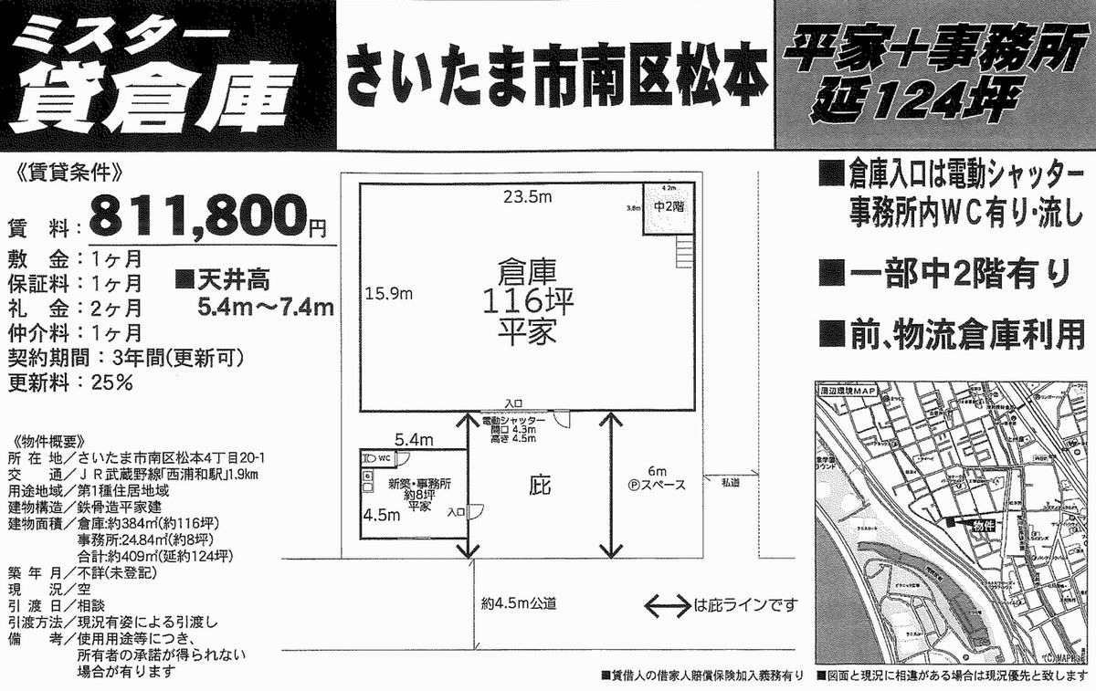 埼玉県さいたま市南区松本4-20-1 (西浦和) 西浦和 貸倉庫 詳細データ