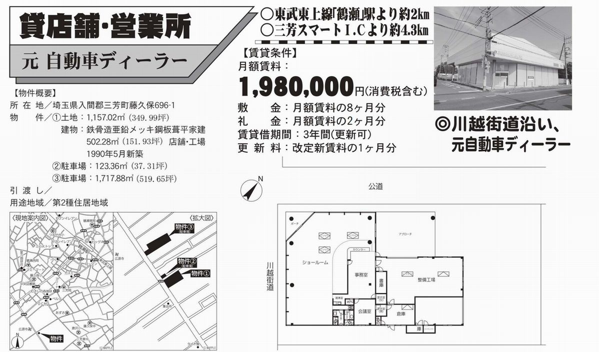 埼玉県入間郡三芳町藤久保696-1 (鶴瀬) 鶴瀬 貸工場 詳細データ