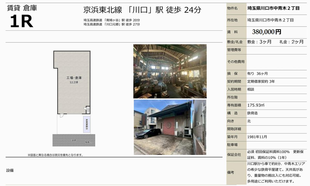 埼玉県川口市中青木2-23-16 (川口) 川口 貸倉庫 詳細データ