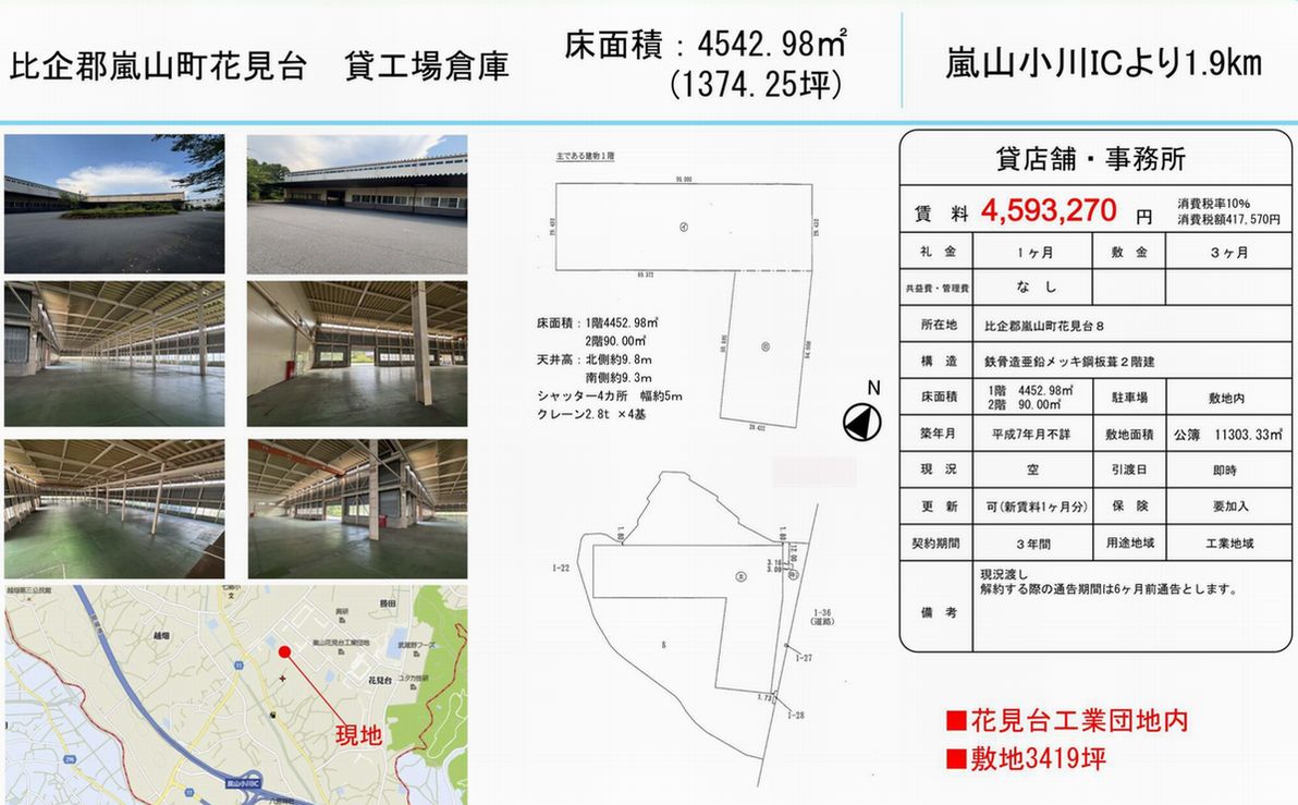 天井高1F9.8m 工業地域 「武蔵嵐山IC」より1.9km 条件交渉ご相談下さい