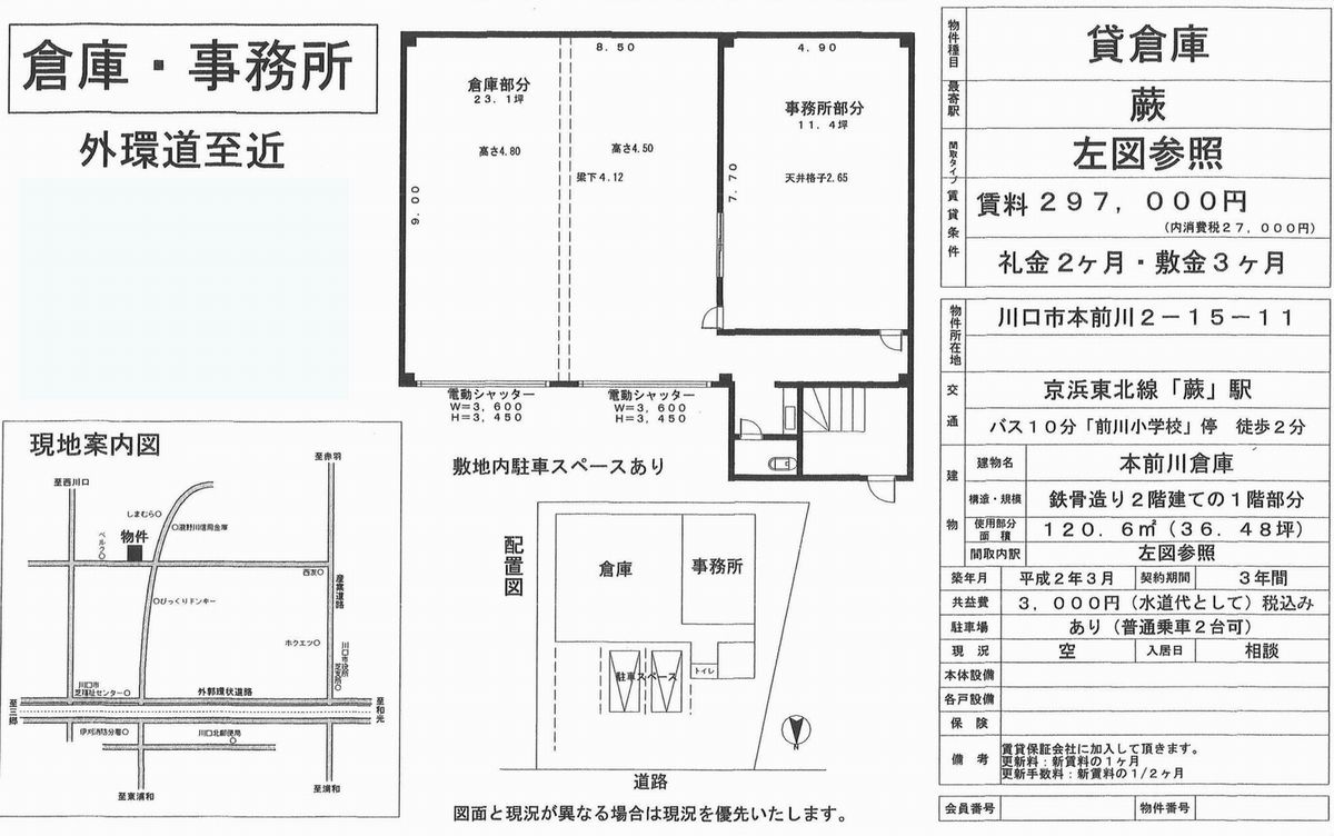 埼玉県川口市本前川2-15-11 (蕨) 本前川倉庫 詳細データ