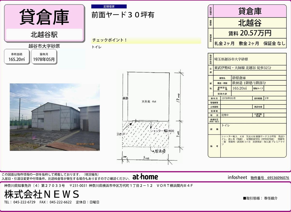 備考 | トイレ 前面ヤード30坪有 シャッター |