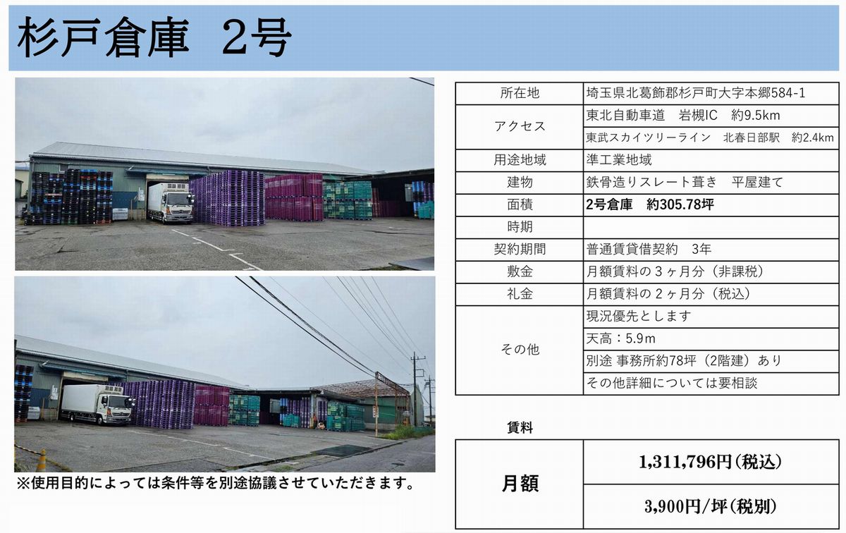 埼玉県北葛飾郡杉戸町本郷584-1 (北春日部) 杉戸倉庫2号 詳細データ