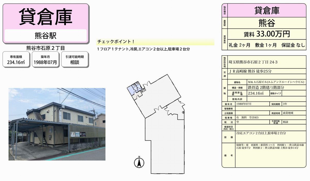 埼玉県熊谷市石原2-24-3 (熊谷) M&A石原ビル 詳細データ