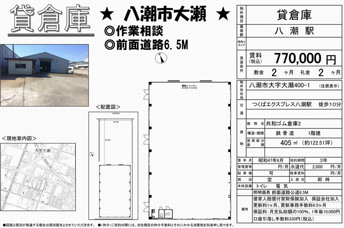 埼玉県内の貸し倉庫・貸し工場の情報満載(トップ) > 埼玉のエリアで探す > 八潮市 > 八潮 > 八潮市大字大瀬400-1 共和ゴム倉庫2