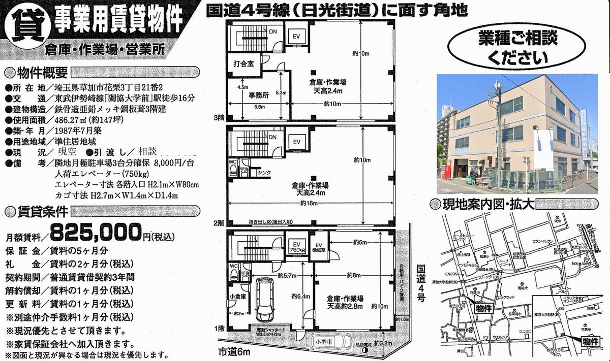 埼玉県内の貸し倉庫・貸し工場の情報満載(トップ) > 埼玉のエリアで探す > 草加市 > 獨協大学前 > 草加市花栗3-21-2 獨協大学前 貸倉庫