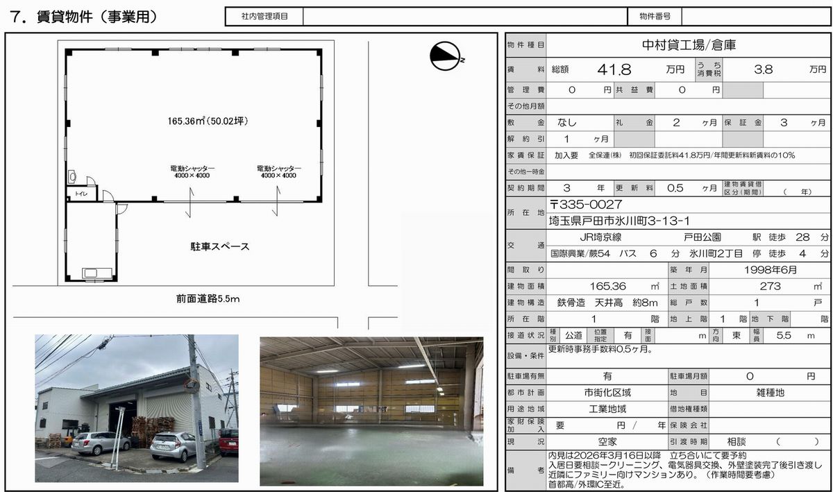埼玉県戸田市氷川町3-13-1 (戸田公園) 中村倉庫 詳細データ