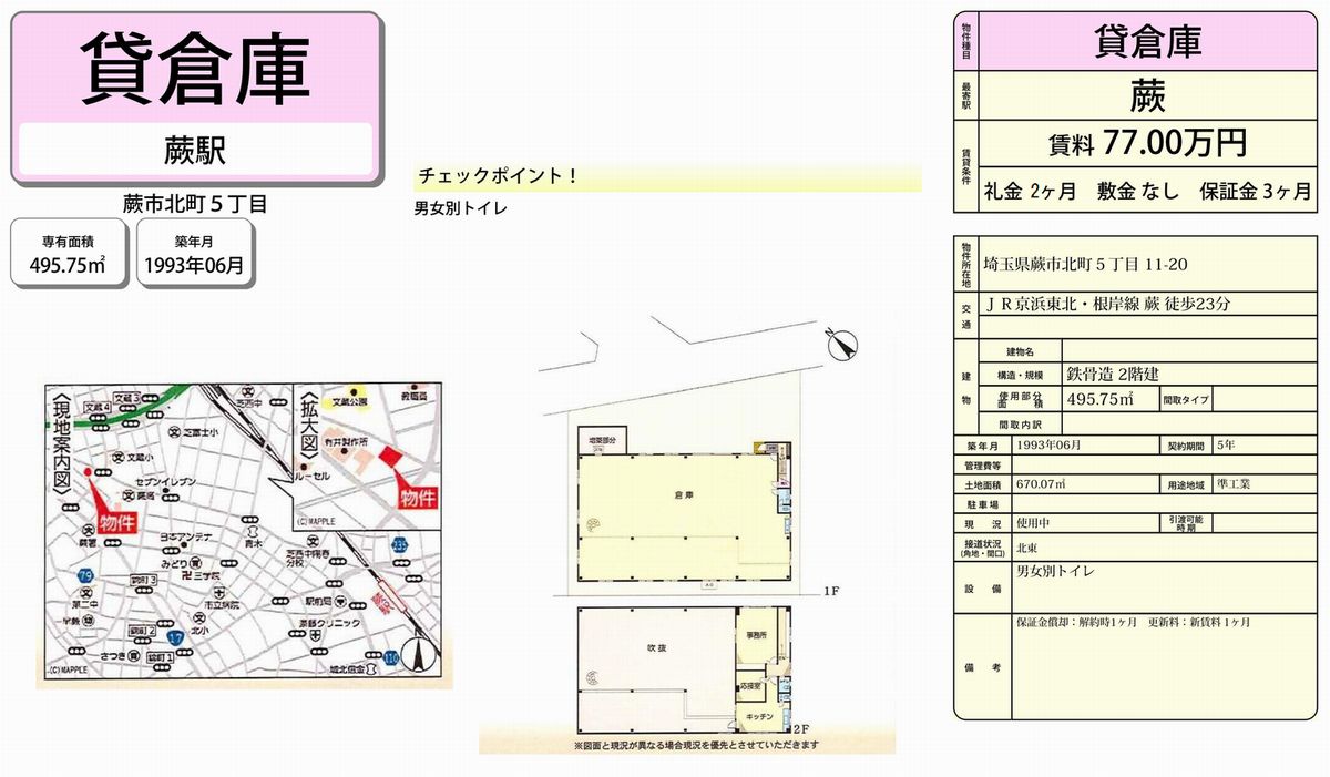 埼玉県蕨市北町5-11-20 (蕨) 蕨 貸倉庫 詳細データ