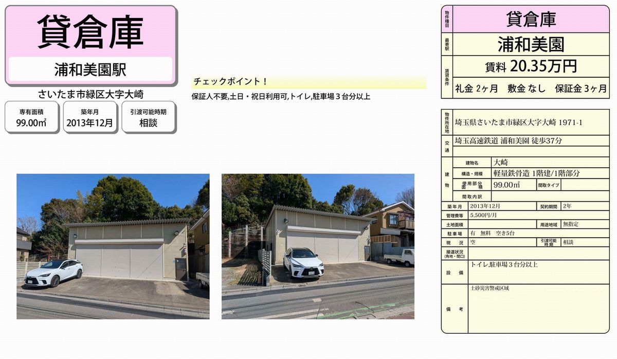 埼玉県さいたま市緑区大崎1971-1 (浦和美園) 浦和美園 貸倉庫 詳細データ