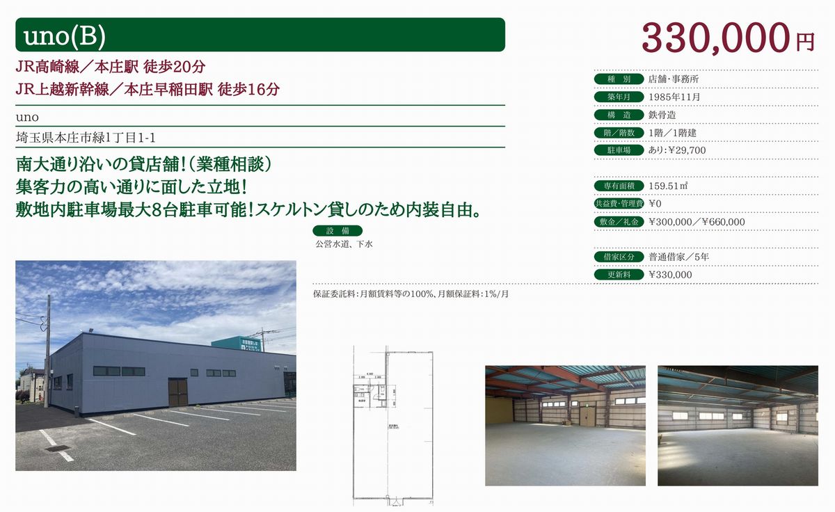 埼玉県内の貸し倉庫・貸し工場の情報満載(トップ) > 埼玉のエリアで探す > 本庄市 > 本庄 > 本庄市緑1-1-1 uno