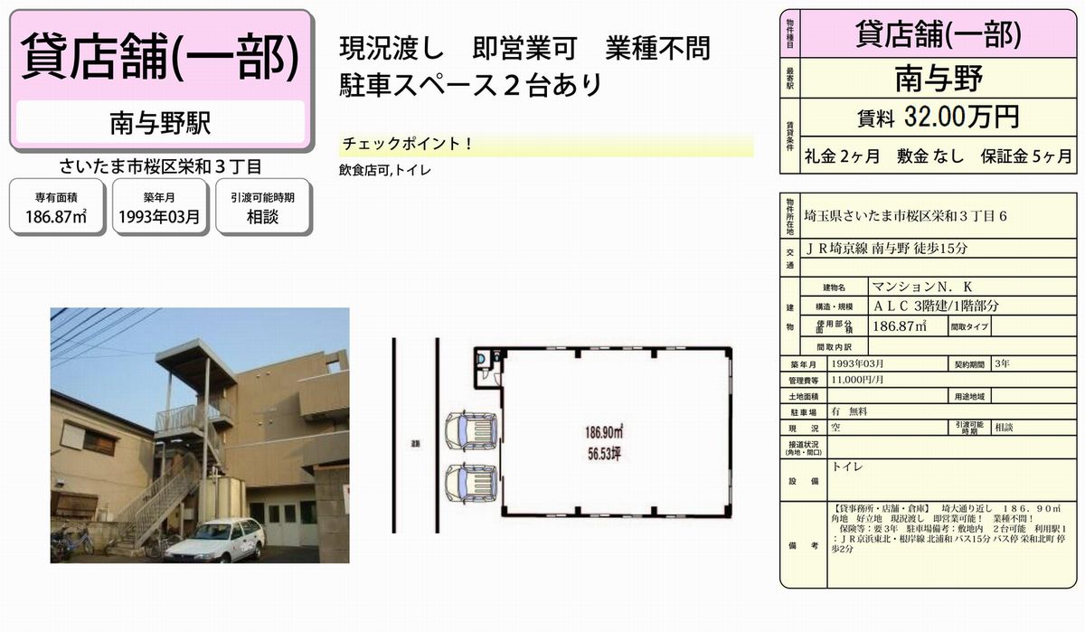 埼玉県さいたま市桜区栄和3-6 (南与野) 南与野 貸倉庫 詳細データ