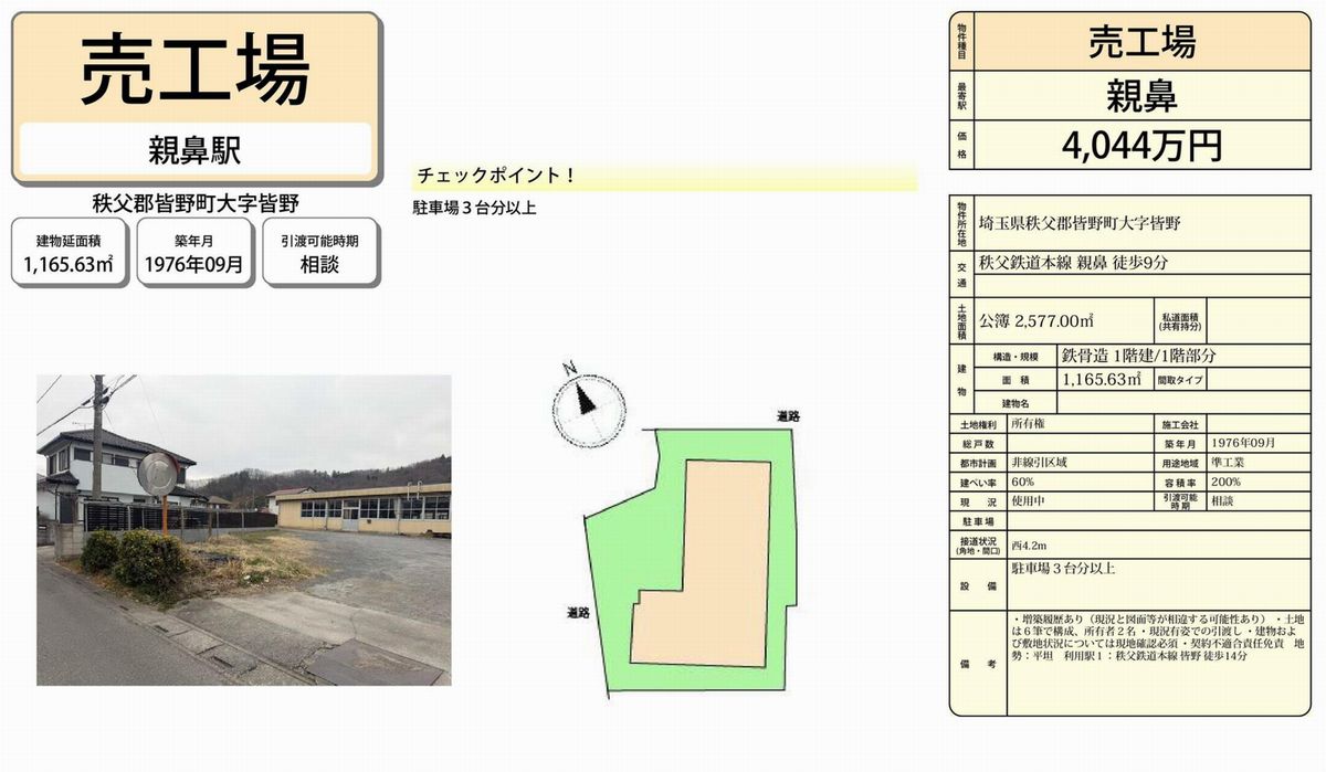 埼玉県秩父郡皆野町大字皆野1868-1 (親鼻) 親鼻 売工場 詳細データ